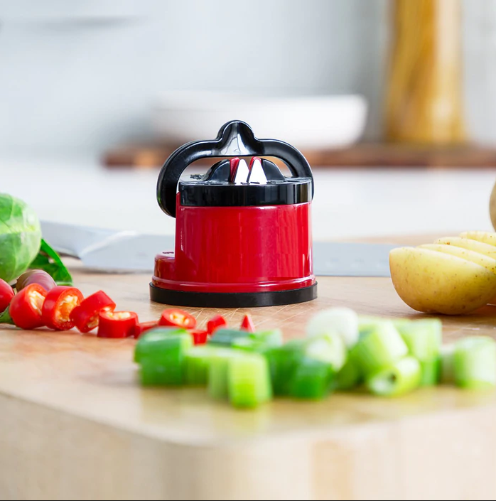 Apresentamos a nova ferramenta de cozinha Knisha, com a qual você poderá afiar qualquer tipo de faca de forma segura graças à sua ventosa antiderrapante. Deixe seus utensílios prontos para obter resultados profissionais!