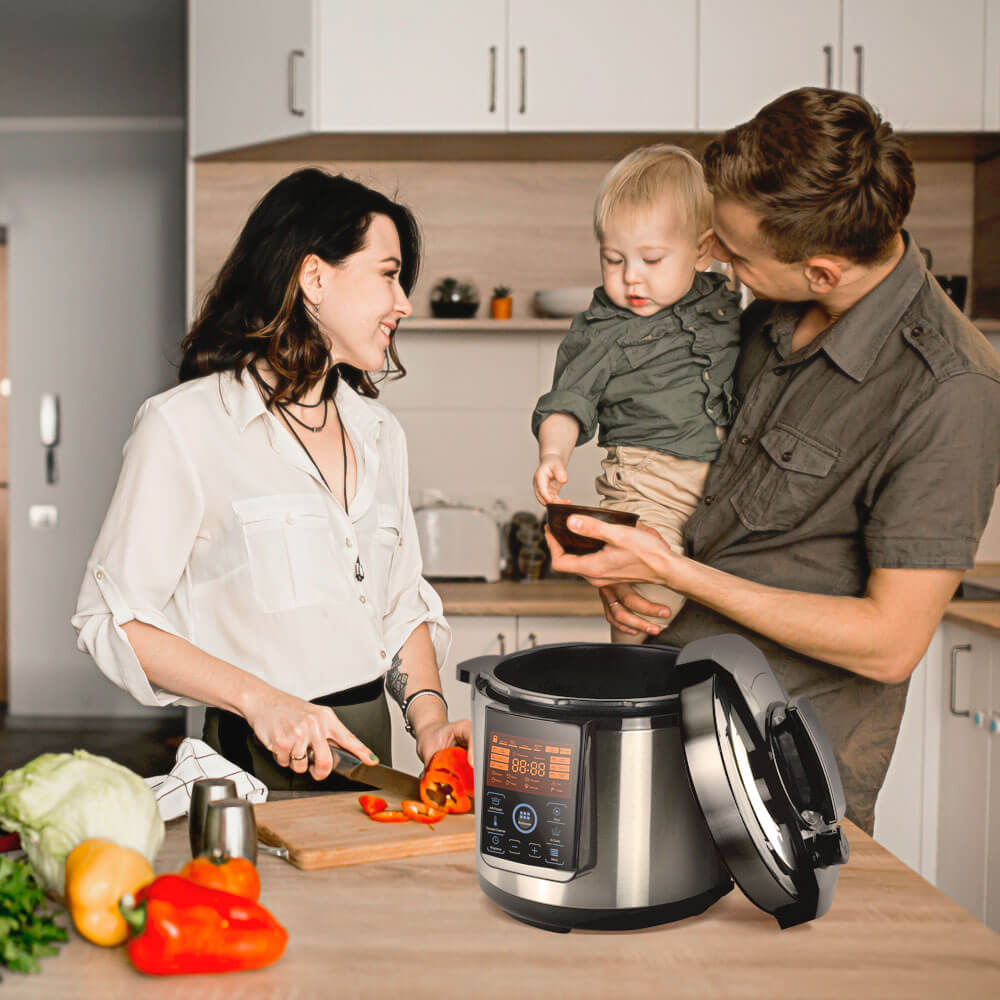 Tem uma grande capacidade de 6 litros, permitindo cozinhar para toda a família ou até mesmo para várias refeições ao mesmo tempo.