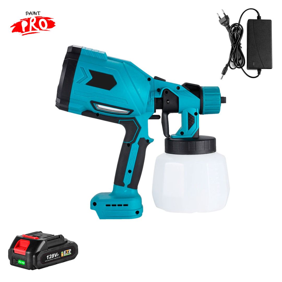 Revolucione a pintura com uma pistola elétrica sem fio de alta potência que inclui um carregador e duas baterias.