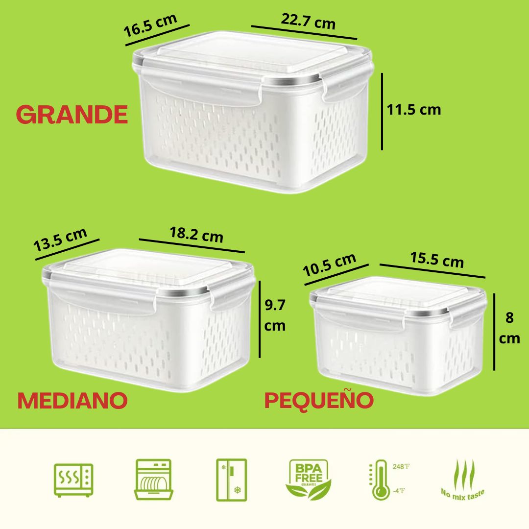 É hora de simplificar sua rotina na cozinha. Os nossos recipientes não só mantêm as frutas e legumes arrumados, mas graças ao seu design fácil de usar, a limpeza torna-se uma brincadeira de criança. Além disso, a sua natureza empilhável significa menos confusão na cozinha e mais espaço para criar magia culinária.